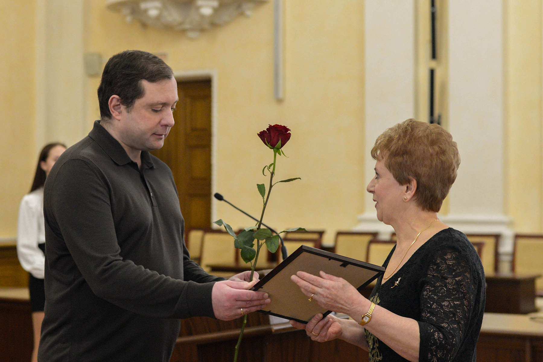Выражаю вам слова глубокой благодарности за работу в тяжелейших условиях во время пандемии коронавируса. Вам – низкий поклон за самоотверженность. Спасибо вам большое! С удовольствием вручу вам заслуженные награды.