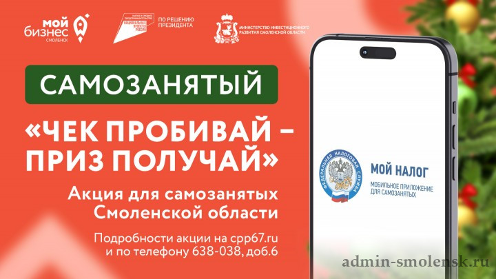 «Мой бизнес» впервые запускает новогоднюю акцию «Чек пробивай – приз получай». Участвовать могут только самозанятые из Смоленской области. Чтобы присоединиться к акции, необходимо сделать всего лишь два действия: