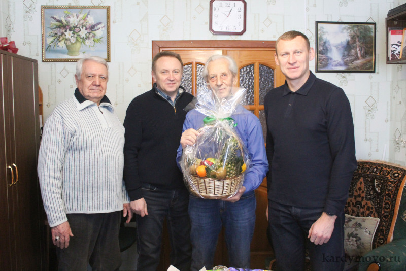 Поздравить Павла Ивановича с днём его рождения приехали глава Кардымовского района Олег Смоляков , председатель районного Совета депутатов Игорь Горбачёв и председатель общественной организации ветеранов Мансур Бухарметов . Гости вручили имениннику подарки в том числе фруктовую корзину от районной администрации.
