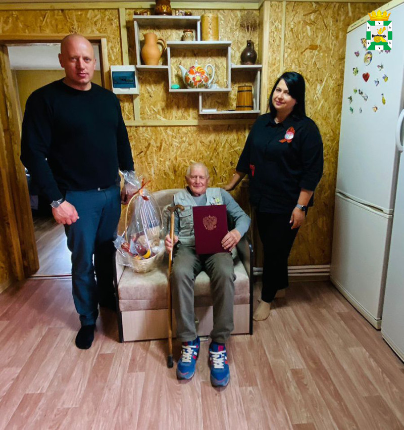 От имени Главы Смоленского района Ольги Павлюченковой они пожелали ветерану крепкого здоровья, благополучия, оптимизма и передали памятный подарок.