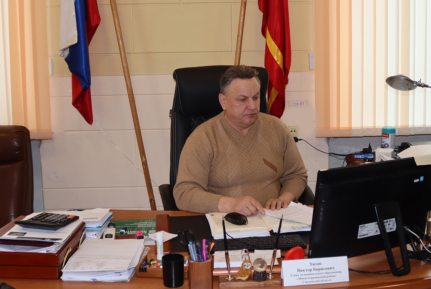 01 января 2024 года Глава муниципального образования «Монастырщинский район» Смоленской области Виктор Борисович Титов принял участие в совещании в режиме видеоконференцсвязи под председательством заместителя председателя Правительства Смоленской области - руководителя Аппарата Правительства Смоленской области Юрия Сергеевича Свириденкова .