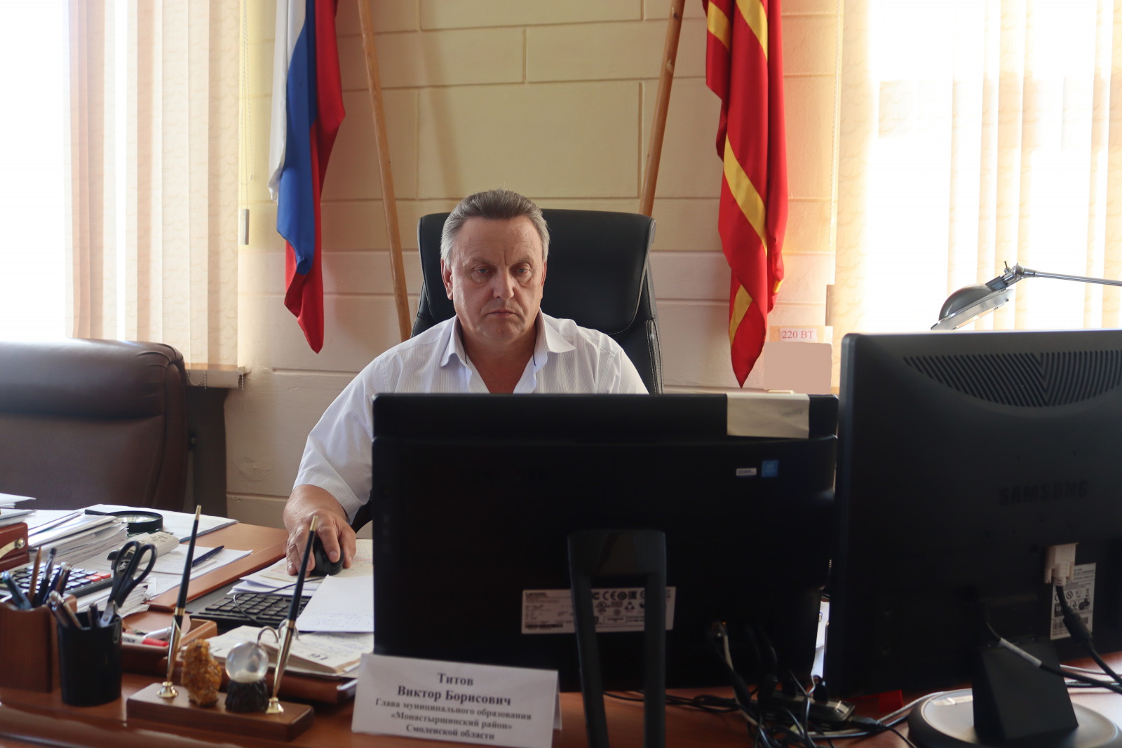 В совещании в режиме видеоконференцсвязи принял участие Глава муниципального образования «Монастырщинский район» Смоленской области Титов Виктор Борисович.