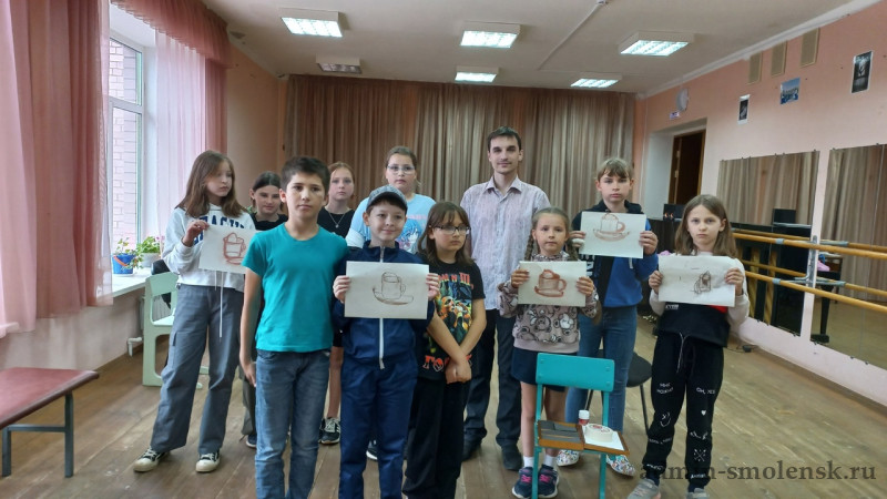 В ходе мастер-класса воспитанникам летнего лагеря были продемонстрированы этапы построения натюрморта сангиной и техники работы мягкими графическими материалами.
