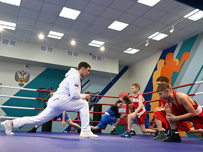 Завершилась церемония открытия тренировкой на новом ринге, которую провел заслуженный мастер спорта России по боксу, действующий чемпион мира Марк Петровский.