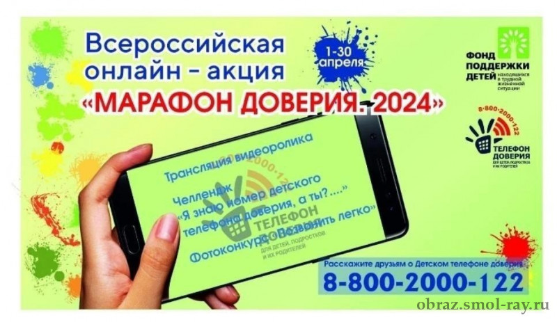 С 1 по 30 апреля Фонд поддержки детей, находящихся в трудной жизненной ситуации, приглашает тебя принять участие во Всероссийской онлайн-акции «Марафон доверия. 2024».