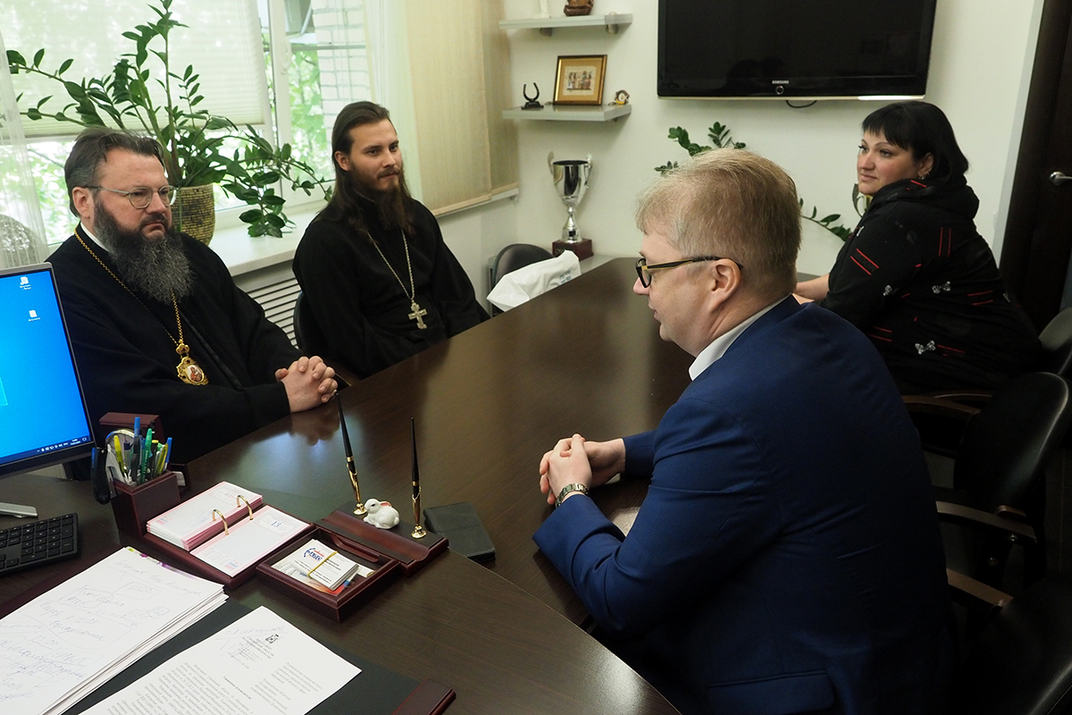 Владыка-ректор и Максим Вячеславович Белокопытов подтвердили договоренность о сотрудничестве в вопросах духовно-нравственного воспитания молодежи. Высокопреосвященнейший митрополит Исидор передал в дар Максиму Вячеславовичу Белокопытову икону Божией Матери Одигитрии.