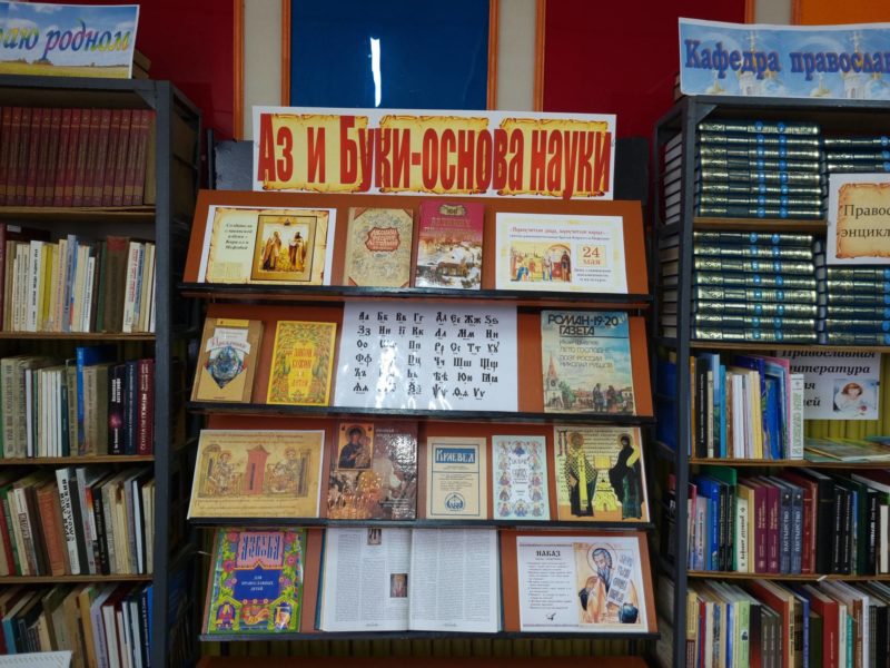 Затем выступил доктор исторических наук, иеромонах Рафаил (Ивочкин), рассказав школьникам о том, как появилась кириллица. Он объяснил, что это алфавит был создан в IX веке братьями Кириллом и Мефодием, которые пришли на службу в Великую Моравию. Отец Рафаил также рассказал об открытии отдела миссионерского общества в Смоленской области, который был создан для распространения православия среди населения. Отец Рафаил презентовал Кафедре Православной литературы библиотеки несколько своих книг, сделав памятную подпись.