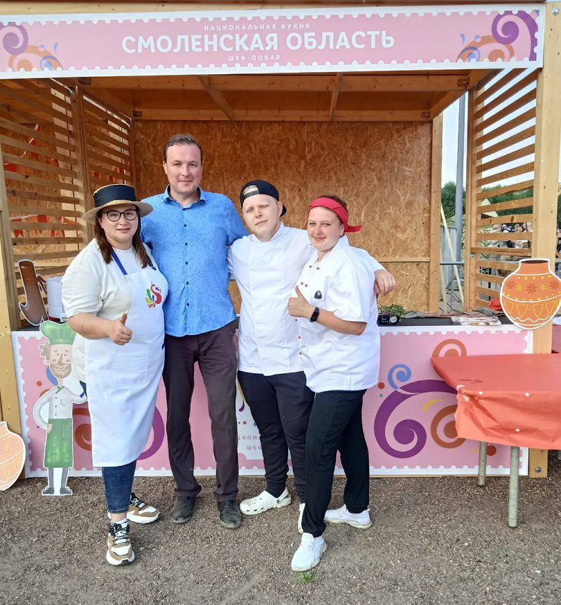 Представители Академии в лице и.о. декана инженерно-технологического факультета Потехина Григория Анатольевича, старшего преподавателя кафедры технологии переработки сельскохозяйственной продукции, известного ресторатора Смоленской области Космачевой Наталии Михайловны, студентов направления подготовки 19.03.04 «Технология продукции и организации общественного питания» Анастасии Жевлаковой и Семена Михальченкова приняли активное участие в локации фестиваля «Национальная кухня». Наталия Космачева являлась не только ведущей на данной площадке. Она смогла установить мировой рекорд в номинации «Самая большая в мире Днепровская каша». Под открытым небом поварами Международного альянса профессиональных кулинаров было приготовлено 1812 кг блюда-рекордсмена.