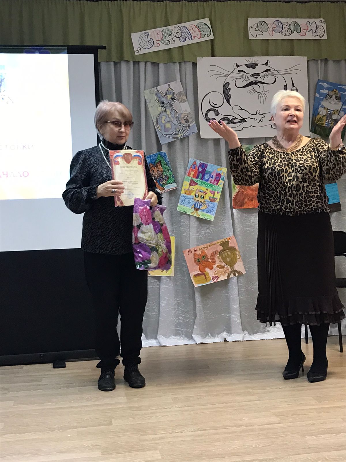 Поэтесса Вяземского литературного объединения «Звонница» Ольга Чернова прочитала своё стихотворение о кошках. А как читали на празднике стихи С.Маршака и Ю.Мориц учащиеся Вяземской школы искусств Давыдова Арина, Иноземцев Тимофей, Авсиевич Полина!