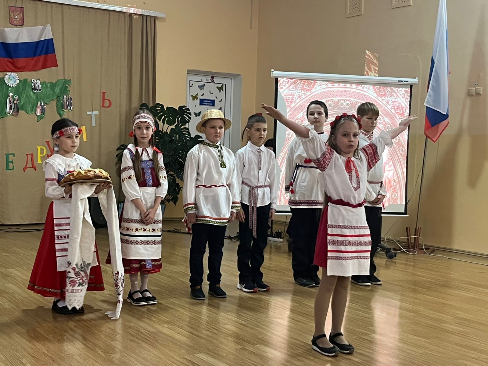 Из дружественной Беларуси прибыл к нам вокальный коллектив, исполнивший на языке соседствующей с нами республики союзного государства патриотическую песню «Беларусь – мой дом». В ней дети 1 «Б» и 3 «Б» классов и их руководитель В.В. Абраменко старались передать главную мысль: как хорошо жить в одной большой многонациональной семье. Национальный колорит передали в белорусском народном танце «Кивуха» шестиклассники (классный руководитель А.А. Наумова). И хотя изучали они его по интернету, получились и движения, и позитивный настрой.