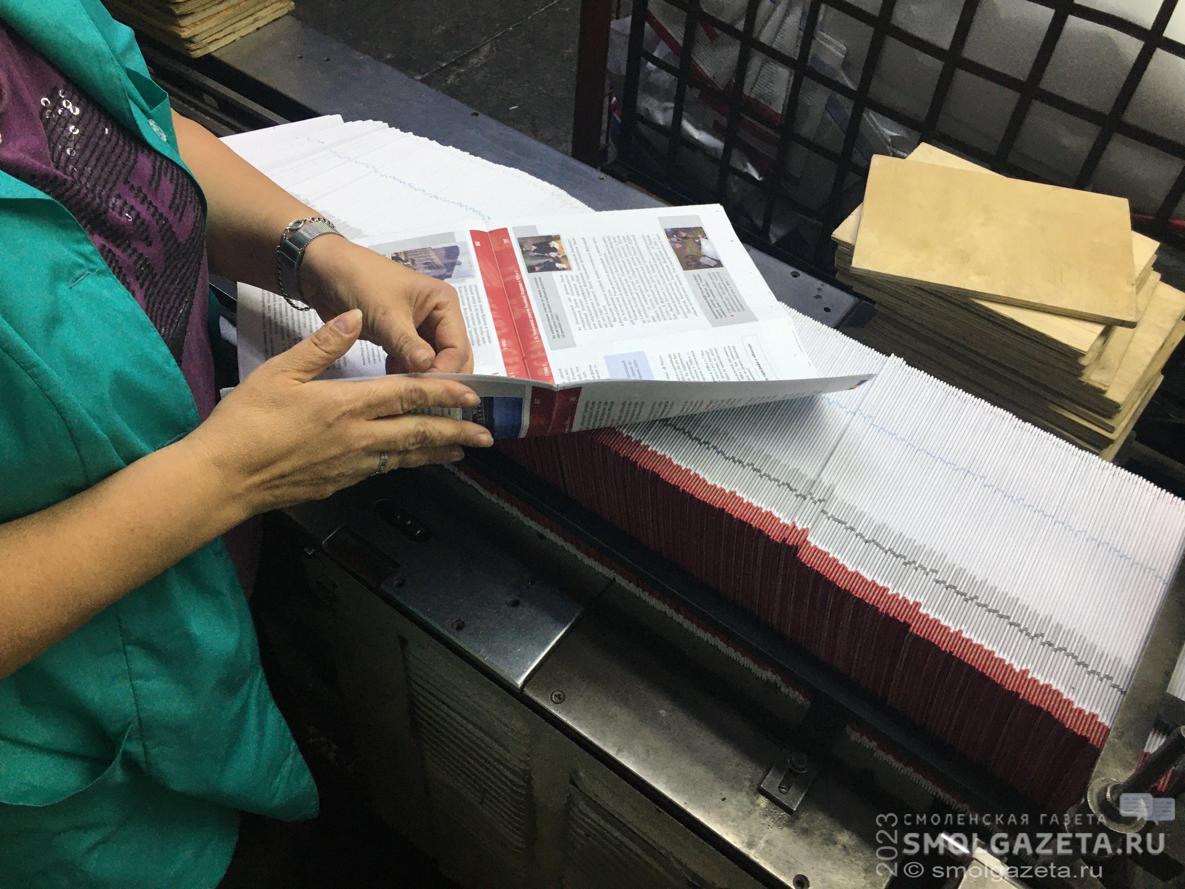 « Мы взяли в печать 340 тысяч учебников. 150 тысяч сегодня уже отгружаем, а оставшиеся - в 20-х числах августа. Если говорить о сроках, то такое количество мы сделали примерно за 4 дня, но начали производство за 10 дней, поскольку проходит сложная технологическая цепочка процессов. Печать 10-12 тысяч экземпляров — это крейсерская скорость в смену, за 8 часов. Соответственно, в минуту делается 20-25 экземпляров книг, - рассказал начальник коммерческого отдела полиграфкомбината Сергей Новиков. - Наши мощности позволяют выпускать до 9 миллионов экземпляров продукции в месяц ».Сергей Новиков подчеркнул, что Смоленский полиграфический комбинат относится к самым крупным и технологически совершенным печатным предприятиям не только России, но и Европы. В месяц здесь выпускают до 3 млн книг в твёрдом переплёте, а также рабочие тетради, дневники, ежедневники и художественную литературу для детей и подростков. Смоленский полиграфкомбинат выпускает более половины всей учебно-методической литературы и чуть меньше десяти процентов всей печатной продукции в стране. Открыт он был в 1976 году и специализируется на производстве учебников.