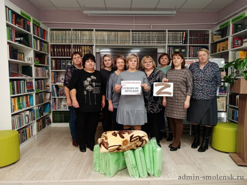 Сотрудники Духовщинской центральной районной библиотеки присоединились к волонтерскому движению "Ваш тыл 67 и передали 8 одеял для ребят, находящихся в зоне специальной военной операции.