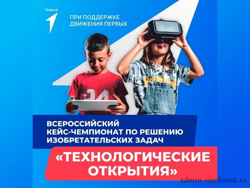 Департамент Смоленской области информирует о Всероссийском кейс-чемпионате по решению изобретательских задач «Технологические открытия». Проект реализуется при поддержке Общероссийского общественно-государственного движения детей и молодежи «Движение Первых».