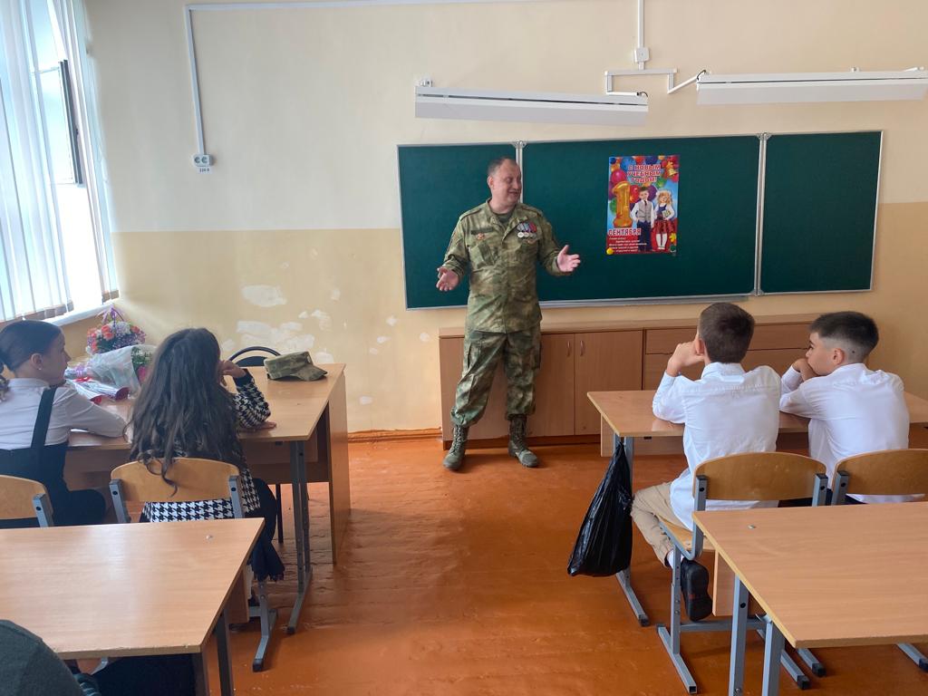 1 сентября член Совета ветеранов при реготделении партии СРЗП и участник СВО Дмитрий Ковалев провел со школьниками урок мужества