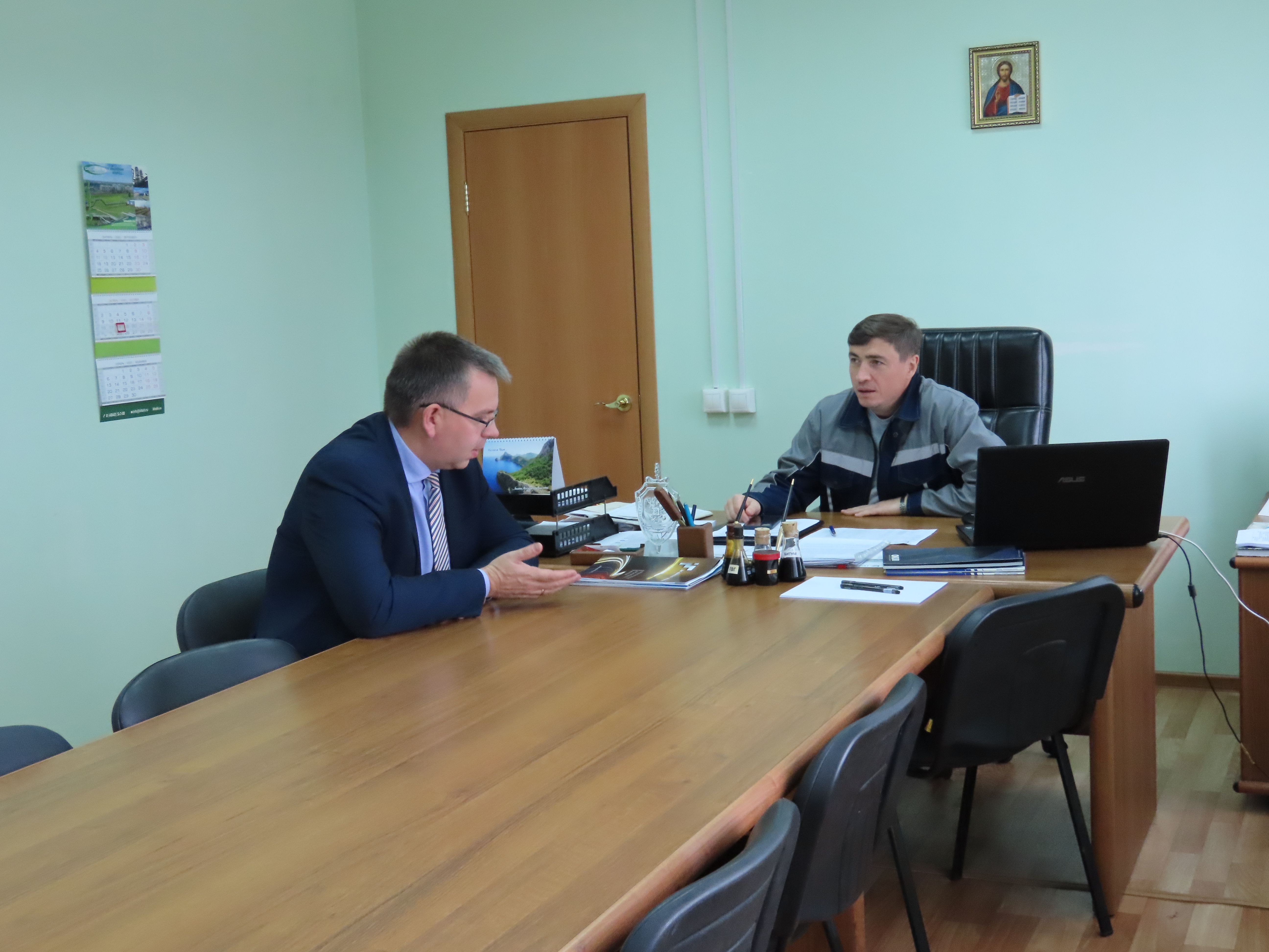 Исполняющий полномочия Главы муниципального образования «Сафоновский район» Смоленской области А.А. Царев посетил с рабочим визитом битумный завод ООО «Битех».