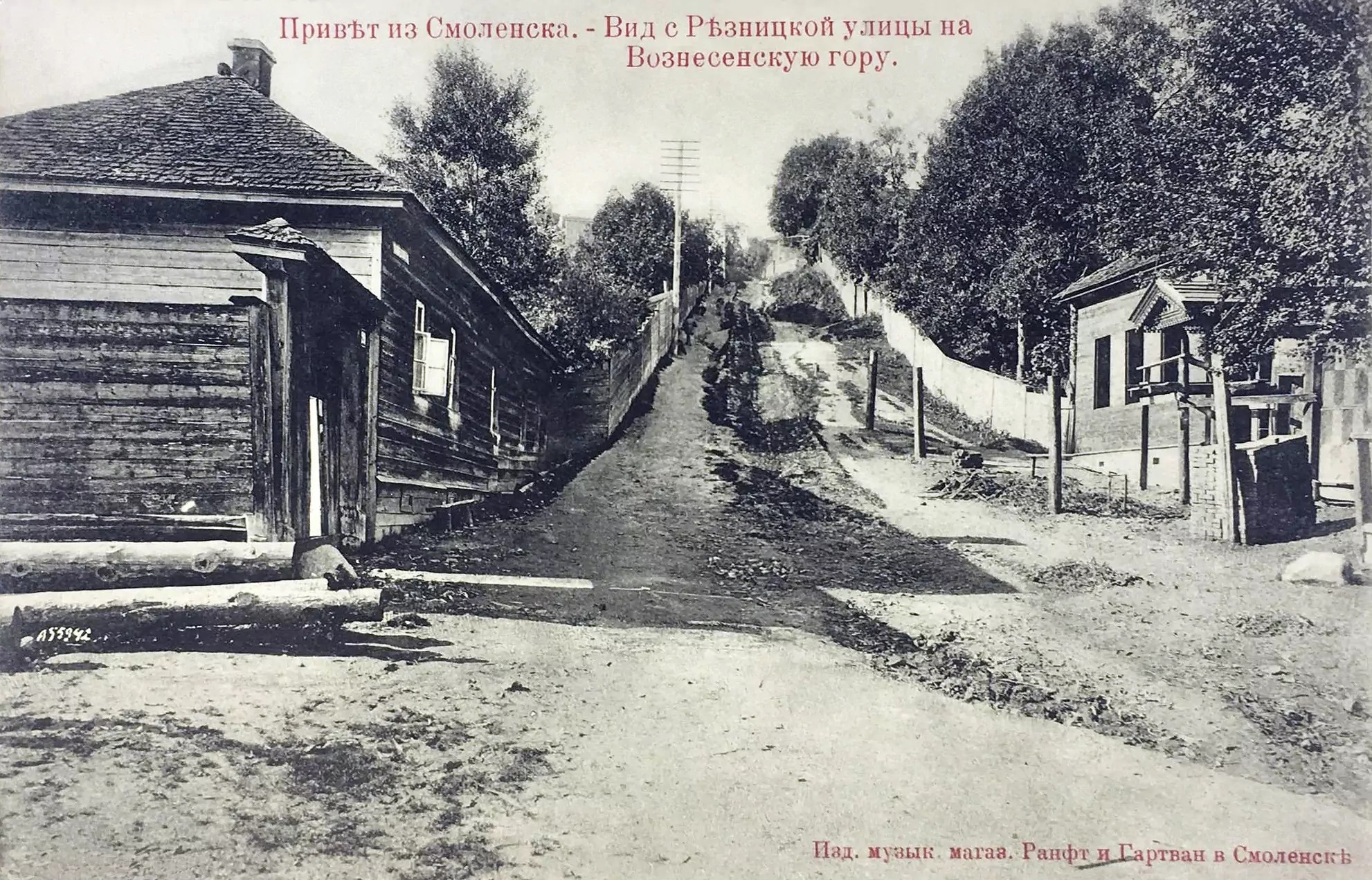 В конце 1874 года в Смоленске начался ремонт Резницкой улицы с устройством высокой шоссейной дамбы. 7 декабря 1875 года мещанка Елизавета Гусева обратилась в городскую управу с предложением о передаче ей во владение городской земли, оставшейся после упразднения переулка от Резницкой к Большой Благовещенской улице. Взамен Гусева предлагала передать городу 100 квадратных сажен, ей лично принадлежащих. Городской архитектор Мейшер, проведя измерения, доложил городской управе, что земли под упразднённым переулком выходит всего 28 квадратных сажен.