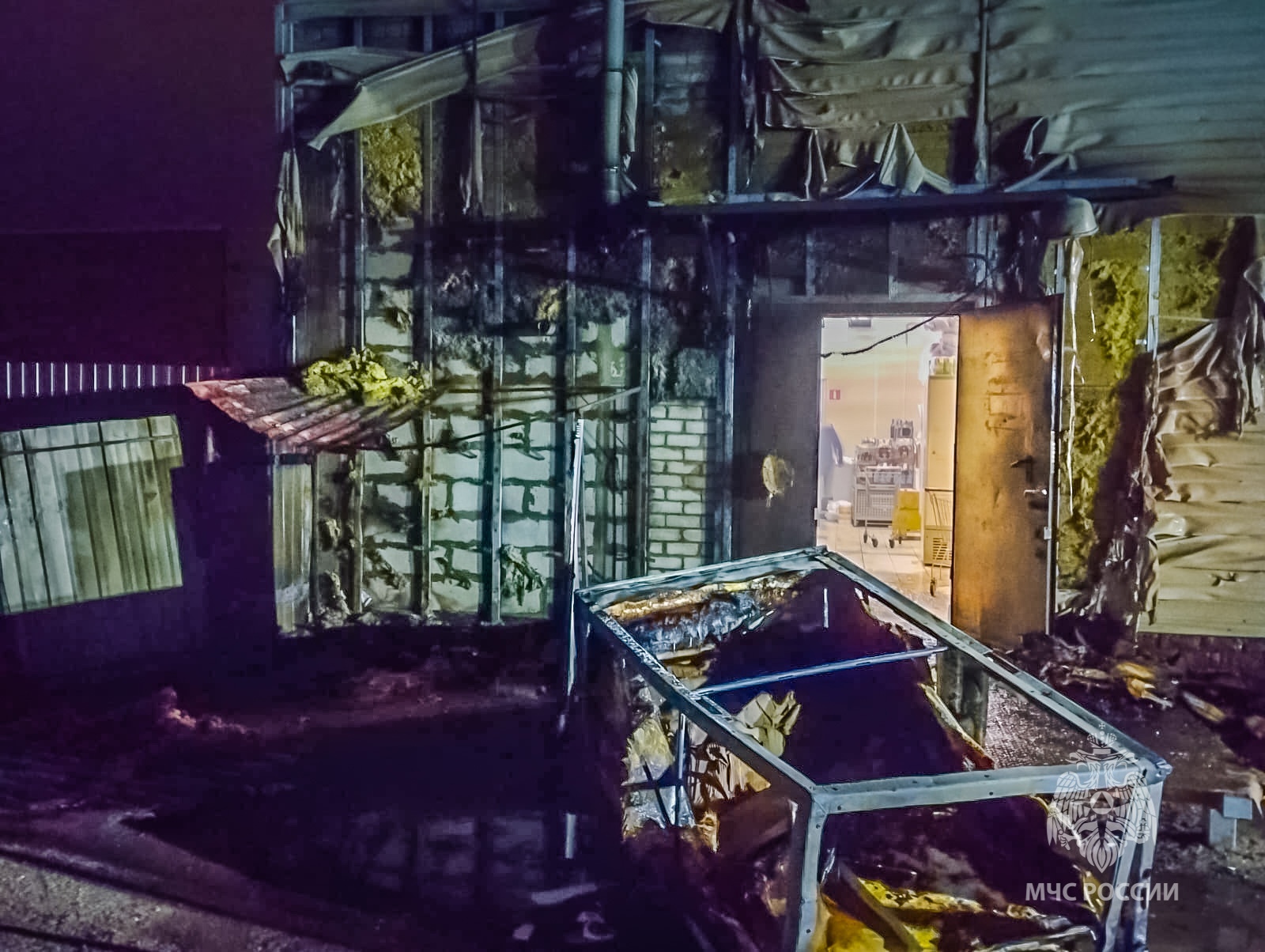 В результате случившегося из-за высокой температуры оплавилась обшивка стены самого магазина, повреждён транспортный термоконтейнер, стоявший на улице.