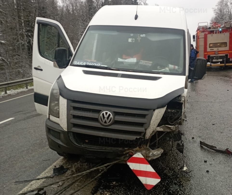 В Вяземском районе Смоленской области минивэн Volkswagen Crafter врезался в дорожное ограждение.
