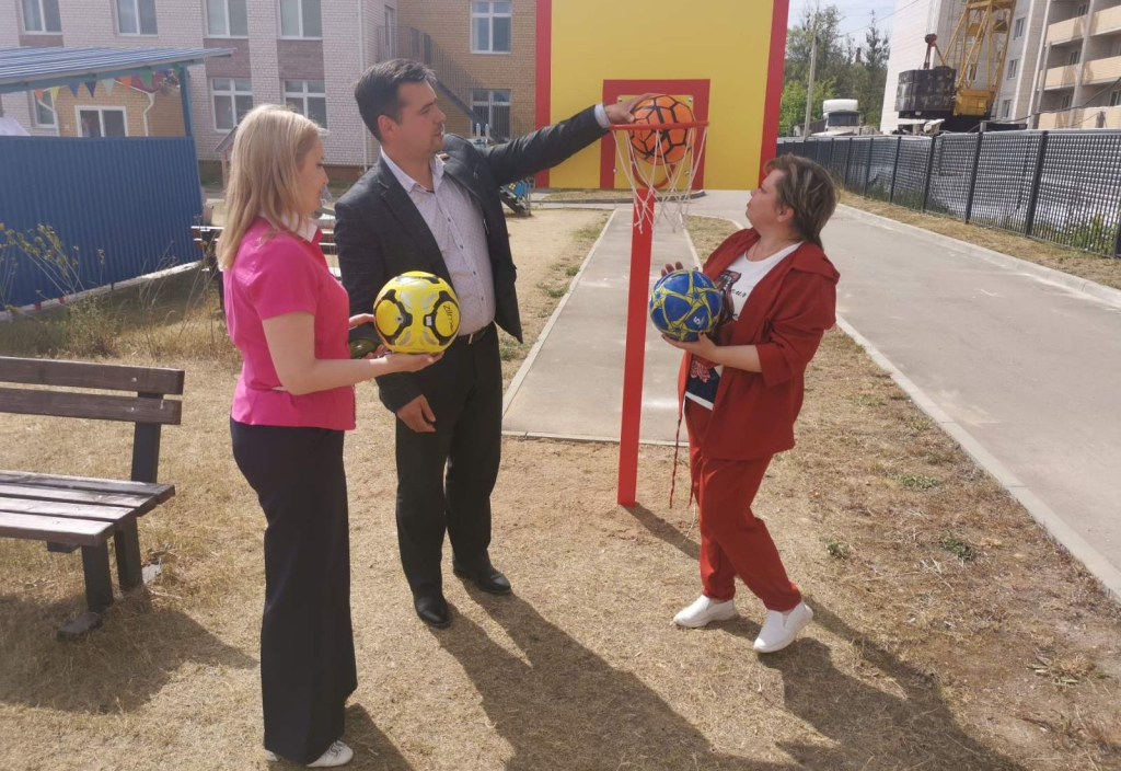 Сегодня он побывал с рабочим визитом в детском саду «Гнёздышко», привёз для воспитанников баскетбольное кольцо, а также мячи.