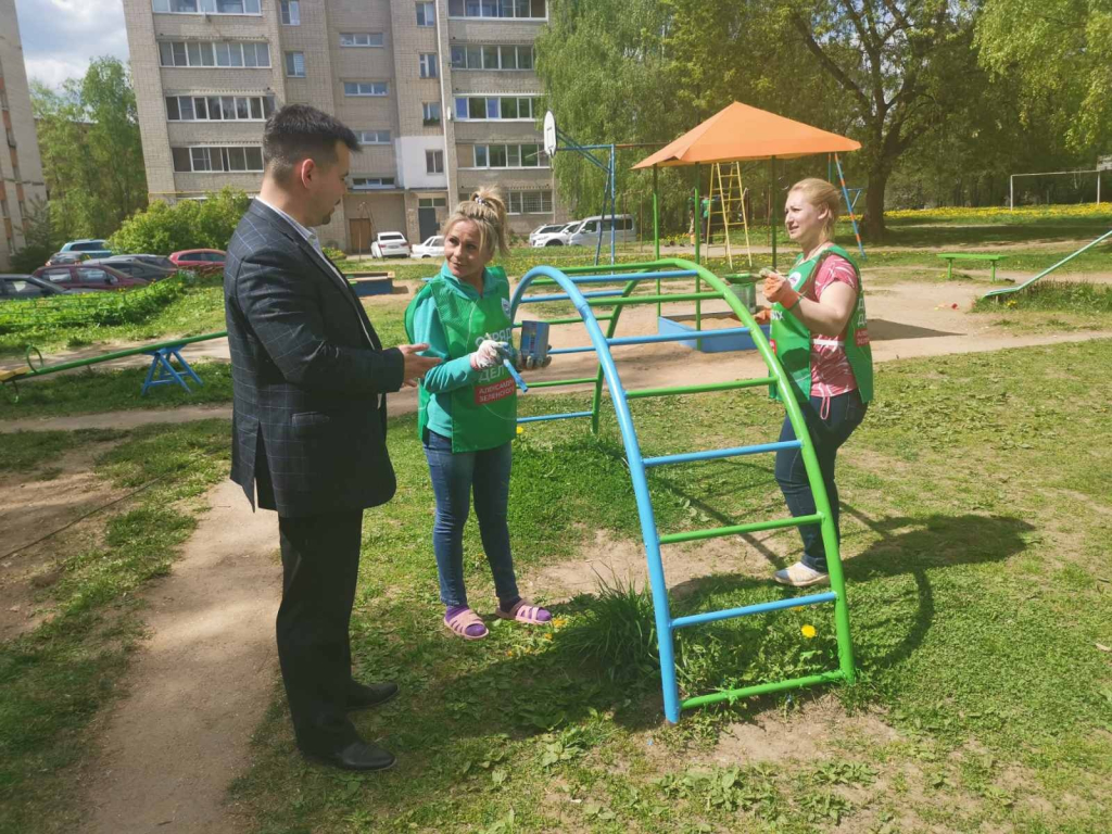 Александр Зеленский помогает восстанавливать детскую площадку в Смоленске