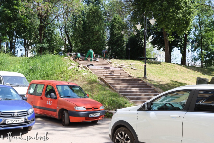 Безопасность смолян и гостей города превыше всего. А самыми травмоопасными объектами городской среды являются, как известно, лестницы. Поэтому в зимний период посыпаются песком в первую очередь именно они, а летом «Зеленстрой» сосредотачивает свои силы на их ремонте. Накануне обновлена лестница за памятником Федору Коню, теперь ремонт начался в сквере Теркина.