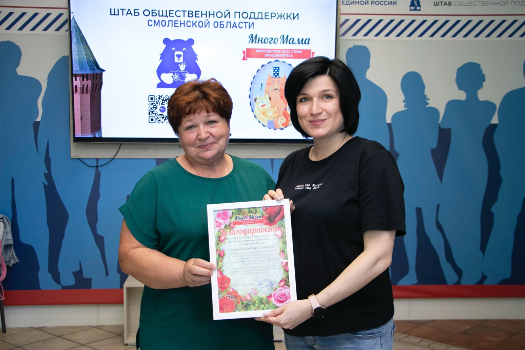 «Гармоничное сочетание ваших профессиональных качеств с чуткостью и душевным теплом делает жизнь подопечных смоленского филиала АНО «Центр помощи многодетным семьям «МногоМама»» светлее и ярче», – говорится в благодарности, которую вручили Светлане Новиковой.
