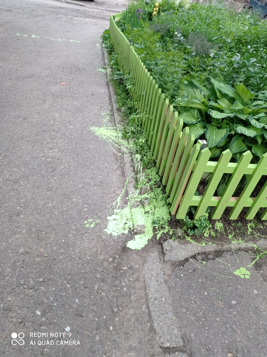 — Но в итоге весь наш двор залит краской, включая растения. Красили, словно лили с банки поверх ограждения, причем в реальности заборчик даже толком и не прокрашен. Считаем, что это безобразие, уже нет сил бороться. К тому же таких заборчиков по городу установлено довольно много, включая улицу Бакунина, а это центр города, — отметил Андрей.