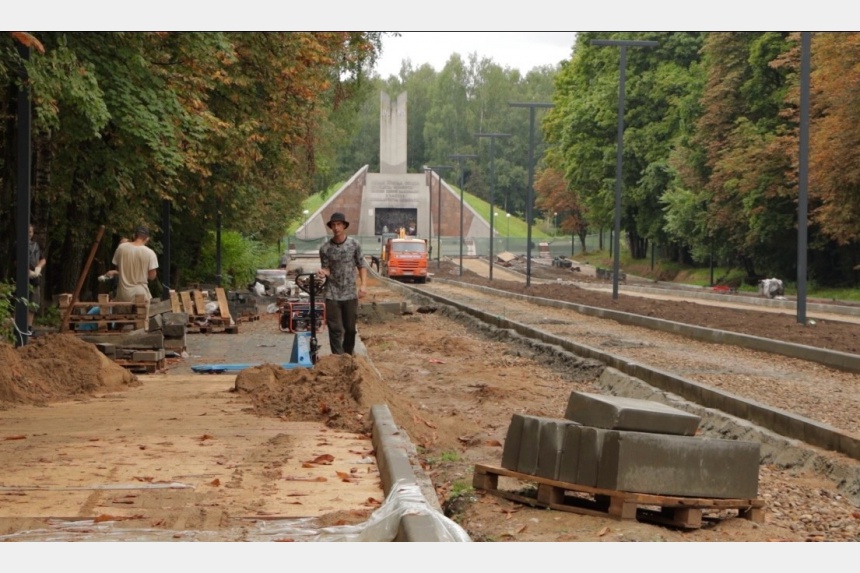 До завершения первого этапа работ в парке осталось чуть больше недели. Он включает в себя ремонт центральной аллеи и территории возле мемориала «Скорбящая мать».