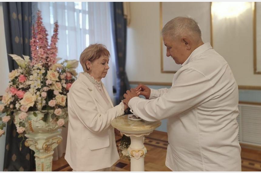 Супружеская пара отметила 50 лет совместной жизни в торжественной обстановке.