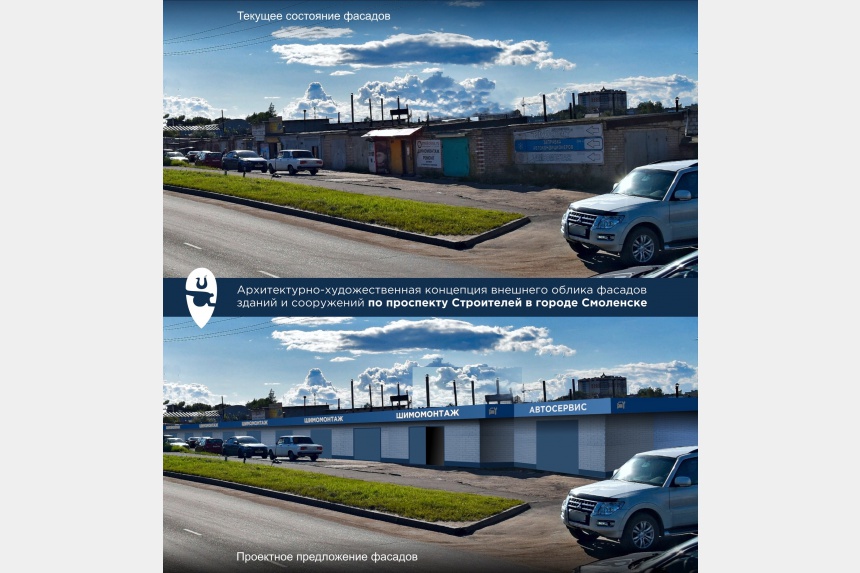 Отдел городского дизайна предложил председателям кооперативов единую концепцию для улучшения общего внешнего вида, где сейчас располагаются шиномонтажи, мойки и автосервисы.