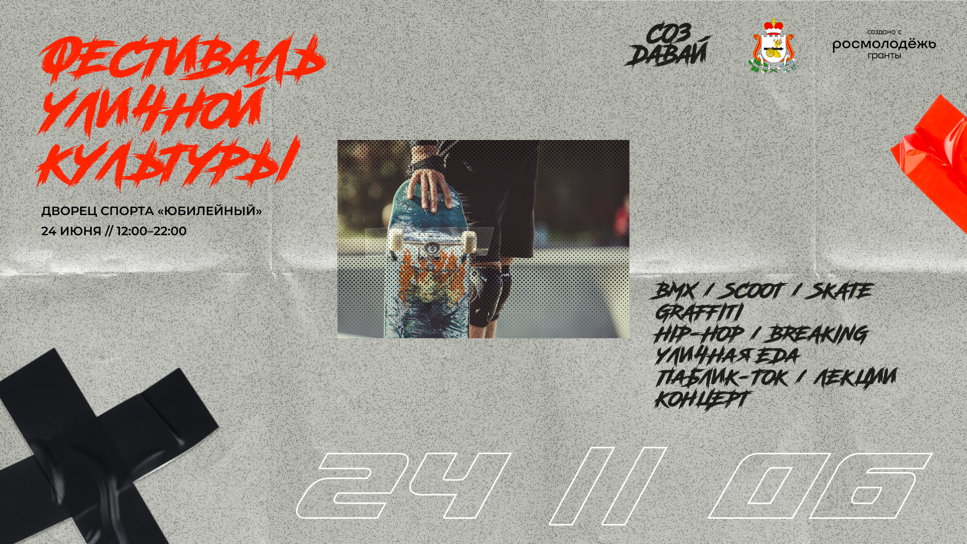 24 июня в рамках фестиваля уличной культуры «Создавай» пройдут соревнования по экстремальному спорту, лекции и концерт.