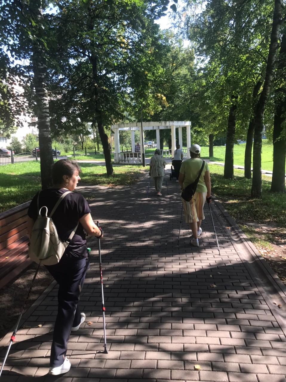Хорошая погода позволяет заниматься скандинавской ходьбой в парке 1100-летия Смоленска. Маршрут проложен с учетом набора высот и пролегает в тени деревьев.