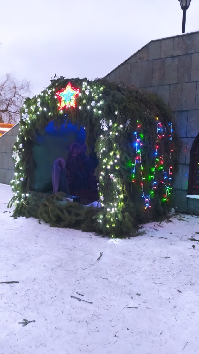 Накануне Рождественского сочельника прихожанами храма в честь святых Новомучеников и Исповедников Церкви Русской города Смоленка был установлен Рождественский вертеп.