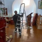 Закончены покрасочные работы в Алтаре, ризнице и пономарке. Продолжаются покрасочные работы в Воскресной школе и правом пределе.