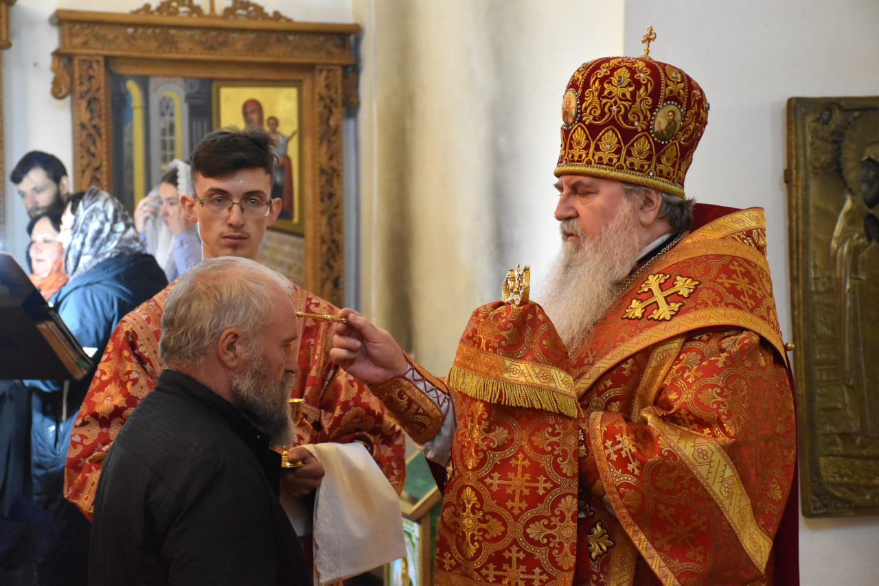В продолжение Всенощного бдения Преосвященнейший Владыка Сергий совершил помазание освященным елеем и преподал архипастырское благословение духовенству и мирянам.