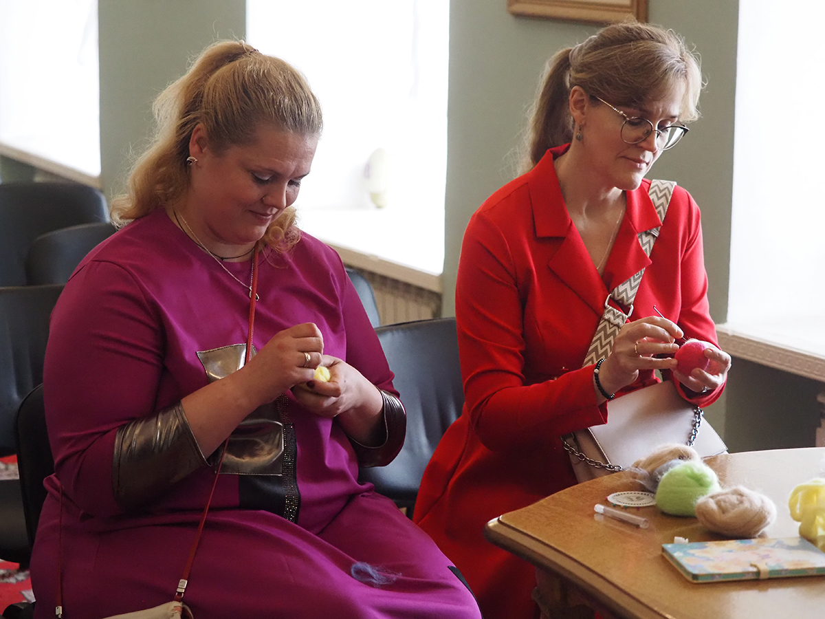 Перед началом торжества в Тронном зале для гостей торжественного мероприятия была организована развлекательная программа. Девушки и женщины имели возможность получить нарисованный портрет, выполненный студентками иконописного отделения среднего профессионального образования Смоленской Православной Духовной семинарии, поучаствовать в разгадке головоломок, а также пройти мастер-класс по валянию шерсти – особой техники рукоделия, в процессе которой из шерсти для валяния создаётся рисунок на ткани или войлоке, объёмные игрушки, панно, декоративные элементы, предметы одежды или аксессуары.