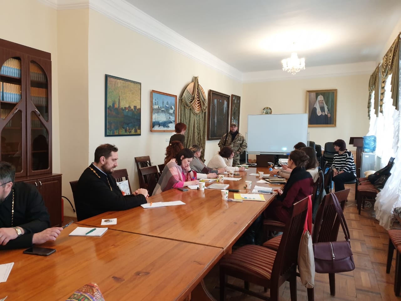 В один из дней состоялась встреча участников семинара с Юрием Петищенко, руководителем группы волонтеров «СМОЛЕНСК Своих Не Бросает», который на днях передал гуманитарный для бойцов от смолян землякам в зоне специальной военной операции. Смоленская епархия передала более 1 200 кг гуманитарной помощи, собранной прихожанами храмов в рамках Рождественского благотворительного сбора. Участники встречи обменялись контактами и обсудили планы взаимодействия.