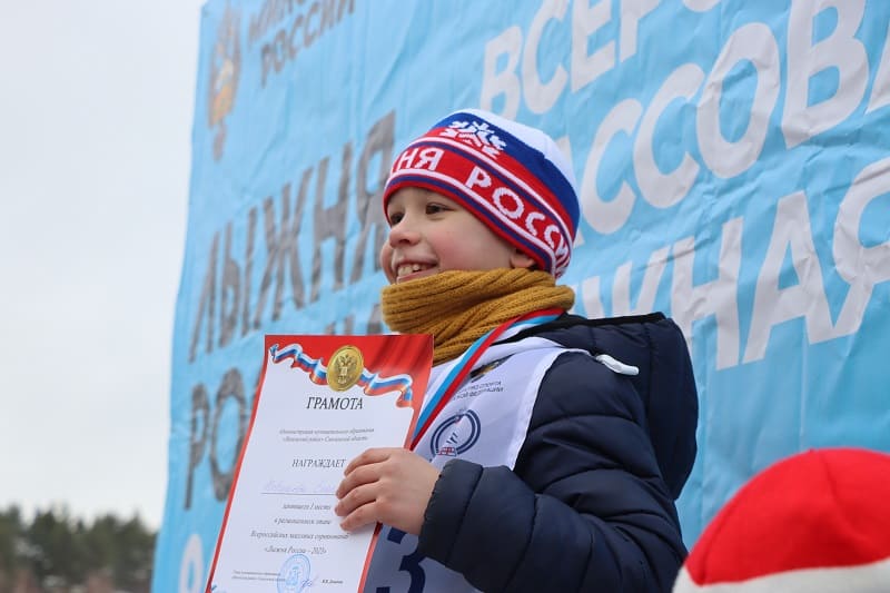 Первыми в лыжной гонке стартовали самые маленькие спортсмены. Косте всего пять лет, но он уже уверенно держится на лыжах. Это его первая взрослая «Лыжня России». Его и других юных спортсменов, которые открыли соревнования, торжественно наградил Игорь Ляхов.