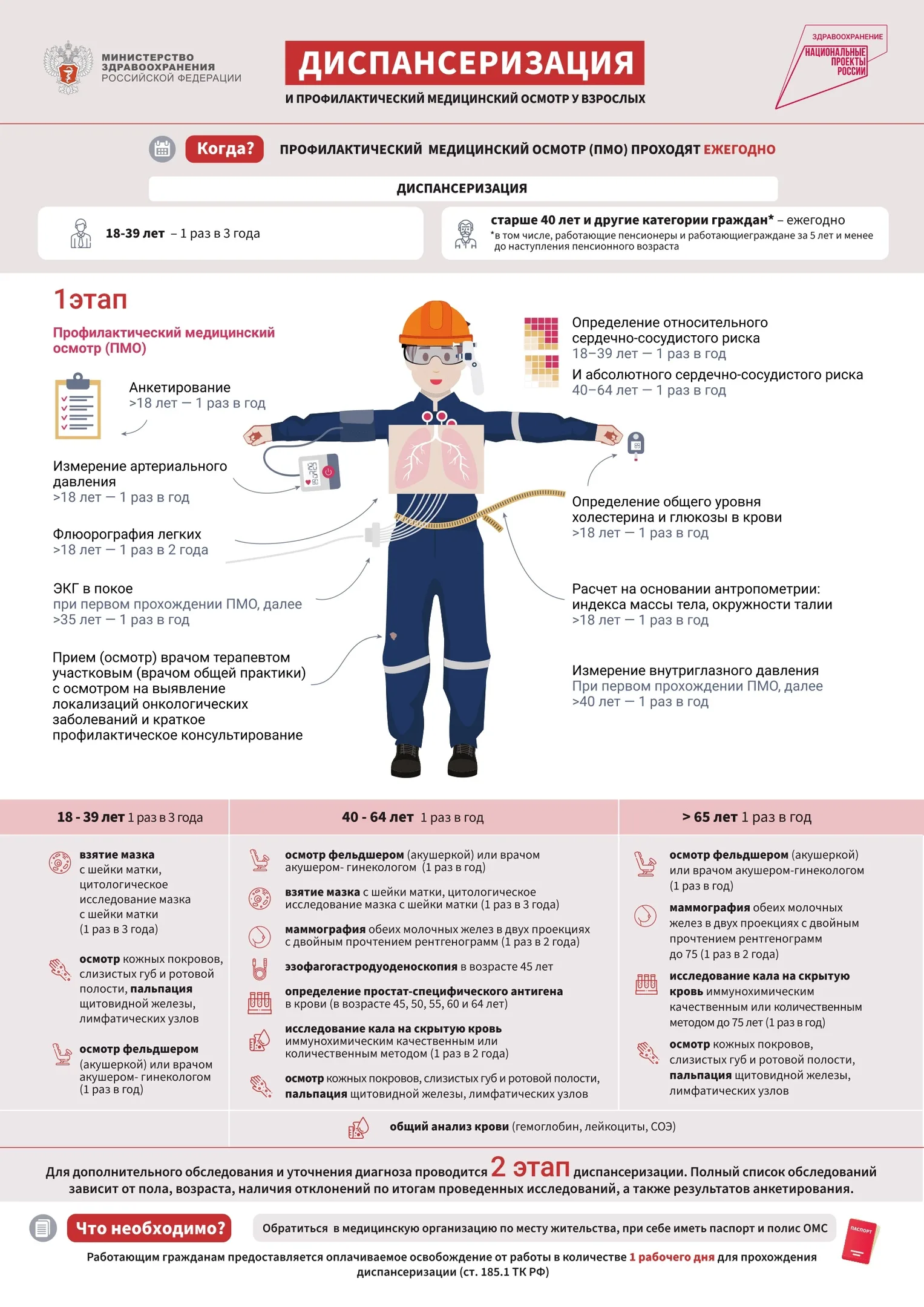 ОГБУЗ “Гагаринская ЦРБ” приглашает взрослое население Гагаринского района пройти диспансеризацию. Чтобы пройти профилактический медицинский осмотр, вам нужно обратиться в поликлинику (кабинет №2 или к участковому терапевту) или в лечебное учреждение села по месту жительства. Не забудьте взять с собой паспорт и полис обязательного медицинского страхования (ОМС). Проходите диспансеризацию и берегите своё здоровье!