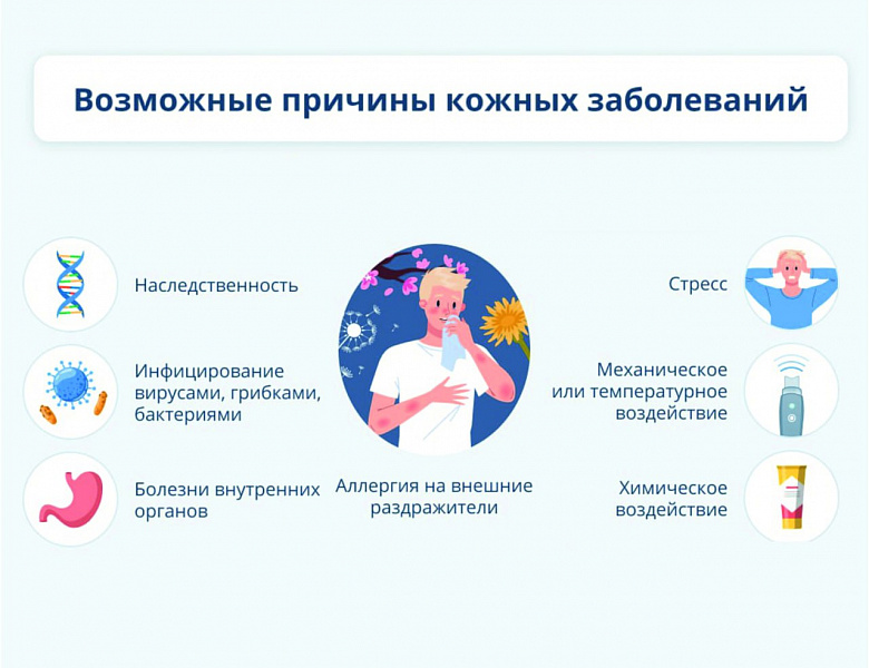 Кожные заболевания – болезни, которые поражают непосредственно сам кожный покров и дериваты. Ими могут страдать люди любого возраст и пола. По данным ОГБУЗ «Смоленский кожно-венерологический диспансер», в Смоленске и области за 2022 год у детей и подростков было зарегистрировано 2 435 случаев таких заболеваний, как атопический дерматит, контактный (аллергический) дерматит, экзема и псориаз.