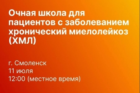 В Смоленске 11 июля на базе ЧУЗ «Клиническая больница «РЖД-Медицина» с 12.00 будет работать Школа для пациентов с диагнозом хронический миелолейкоз (ХМЛ).