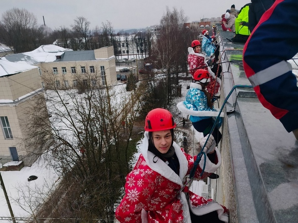 В Смоленске Деды Морозы с подарками десантировались в детскую больницу