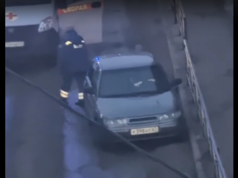 Видео поступка водителя в Сети. Судя по кадрам, работник станции скорой помощи просто сел за руль оставленной открытой иномарки, снял с ручного тормоза и повернул руль вправо, а его коллега толкнул транспорт к обочине.