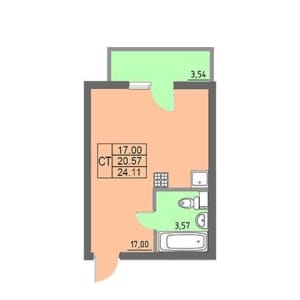 Квартира-студия располагается в проектируемом жилом доме на Киевском шоссе. Автономное отопление от системы котлов на 1 стояк квартир с возможностью регулирования температуры.