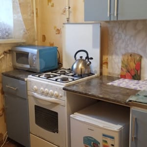 Два раскладывающихся дивана в комнате ,третий раскладной диван на кухне , стиралка-автомат,раздельный с/у,посуда ,необходимая для приготовления пищи. Wi-Fi (по запросу), постельные и гигиенические принадлежности. Маршрутки во все районы города .