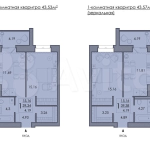 - Общая площадь: 43.5 м²