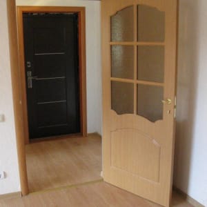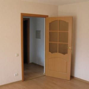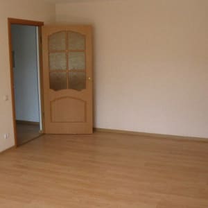 Пол - ламинат, стены - обои, потолки - шпаклёвка + грунтовка + покраска в белый цвет, идеально ровные. Окна - пластиковые.