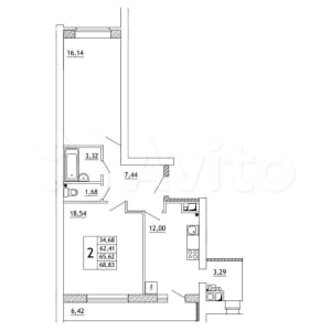 - Общая площадь: 68.8 м²