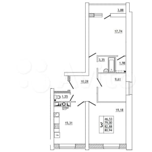 - Общая площадь: 82.9 м²