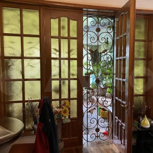 На Первом этаже: два просторных Зала. Один с Камином, второй с выходом на оранжерею. На полу Паркет из красного дерева! Все двери из Дуба! На окнах Ролеты.